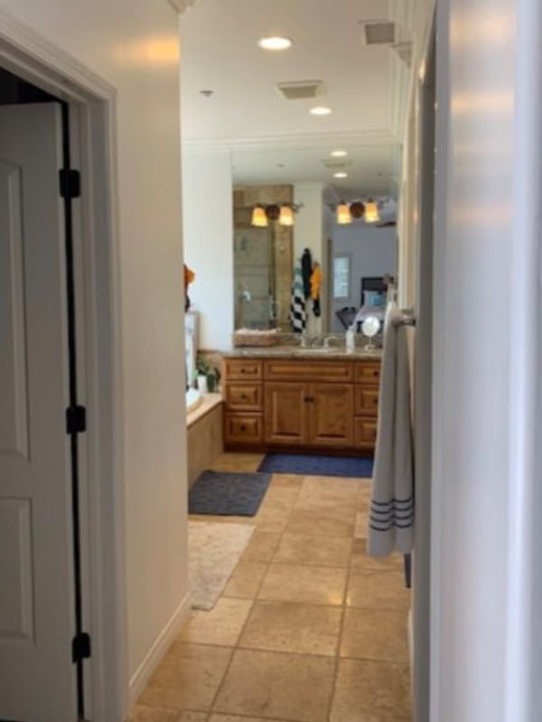Before the renovation, the bathroom felt oversized but inefficient, with bulky fixtures, dated materials, and unused areas that didn’t contribute to daily comfort. The updated design reorganized the space into clearly defined zones, including a walk-in shower, freestanding tub, and generous vanity storage, allowing each area to function independently without feeling crowded.
